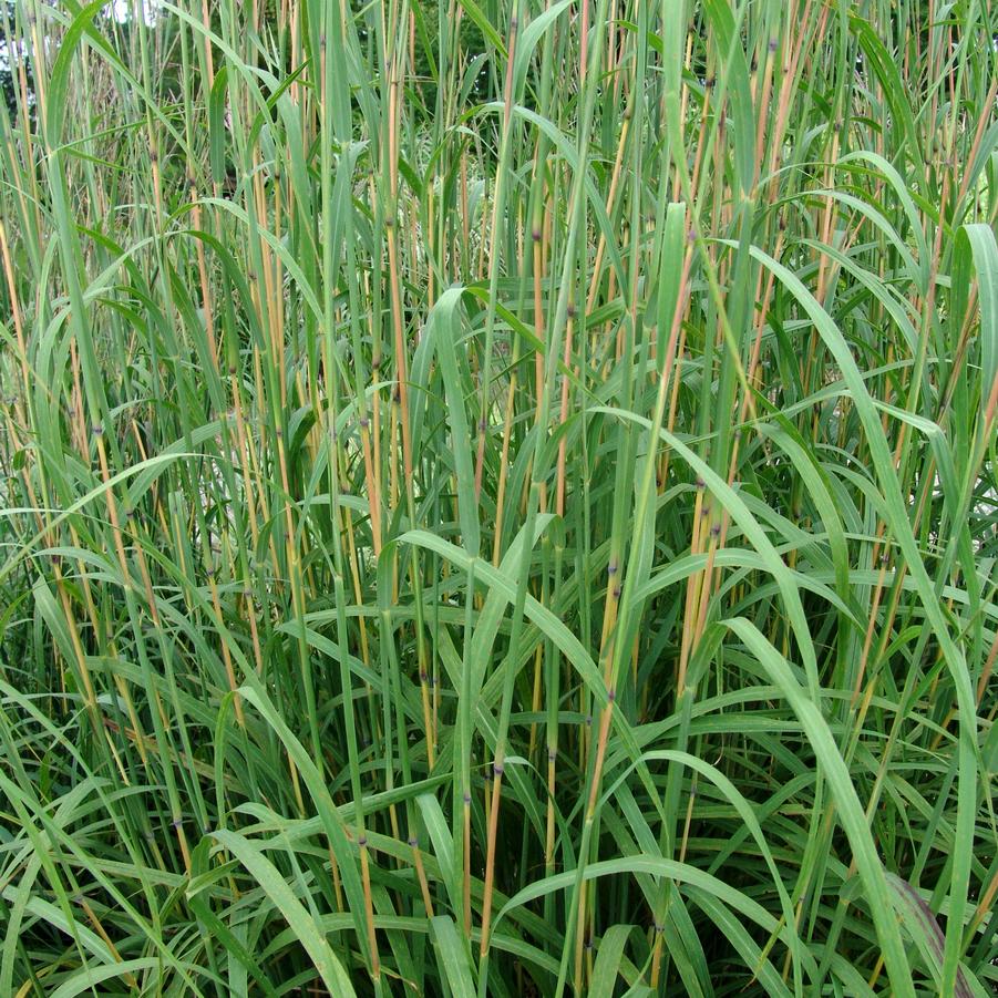 The king of native grasses, big bluestem has handsome gray to blue-green stems in spring, turning to green alternating with deep red in summer, then to coppery red in fall. Three-fingered seed heads top tall stems in August. Clump forming with excellent drought tolerance once established. Found naturally in moist meadows and along side roads and rivers from Canada to Mexico.
