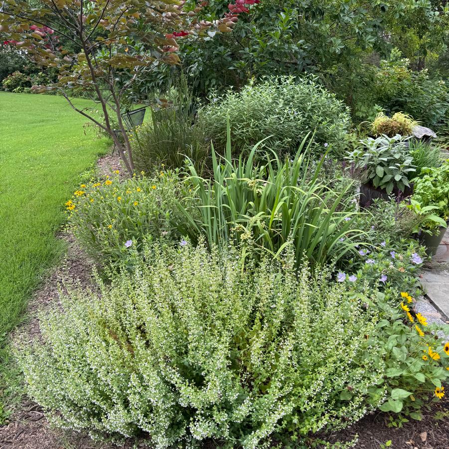 Beyond its beauty, calamint brings real value to the garden. Unlike other species, this selection is sterile and will not self-sow in the garden. However, bees, butterflies, and countless pollinators are drawn to its flowers from early summer well into fall, while its strong, minty fragrance makes the foliage unappealing to deer and rabbits. Dependable, pest-free, and low-maintenance, it’s a modest-sized perennial that delivers far more than its footprint suggests—truly a blooming machine and pollinator magnet.