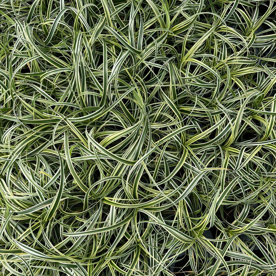Features bold green and white grassy foliage on large plants with a graceful, cascading form. It forms low to medium-height tufts, making it an excellent choice for ground cover or edging. This variety offers greater sun tolerance than other variegated Carex oshimensis and also demonstrates good heat resistance.