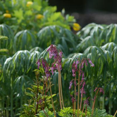 Despite the garden popularity of this native woodland wildflower, Dicentra eximia is actually endangered in New Jersey and Pennsylvania. Its native habitat is largely the woodlands of the Appalachian mountain range, often found on slopes and rocky outcrops. Wild bleeding heart grows best in filtered shade or part sun in moist well-drained soil. When placed in a good location, it will happily self-sow.